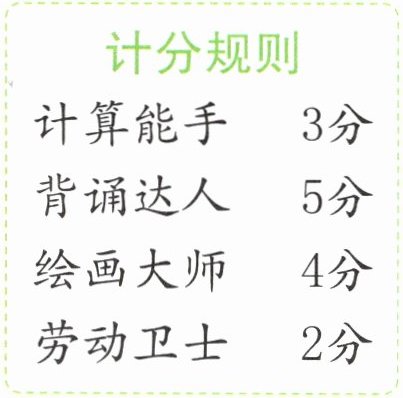 (3)娇娇根据计分规则列出算式4×3,她解决的问题是______