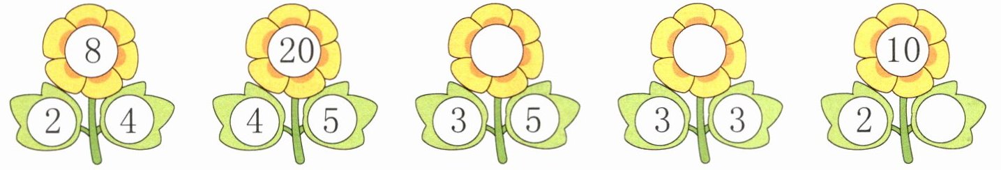 15 9 5 【解析】下面两片叶子上的数相乘就是花朵里的数。