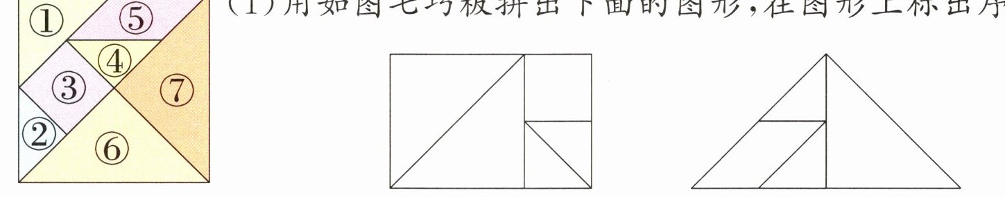 (1)用如图七巧板拼出下面的图形,在图形上标出序号。
