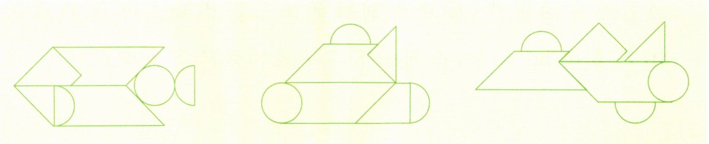 (2)下面是用七巧板拼出的不同图案,你知道它们分别是由哪种七巧板拼成的吗?填一填。(填序号)