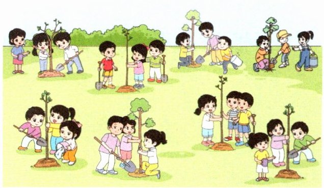 (1)一共有多少人在植树?