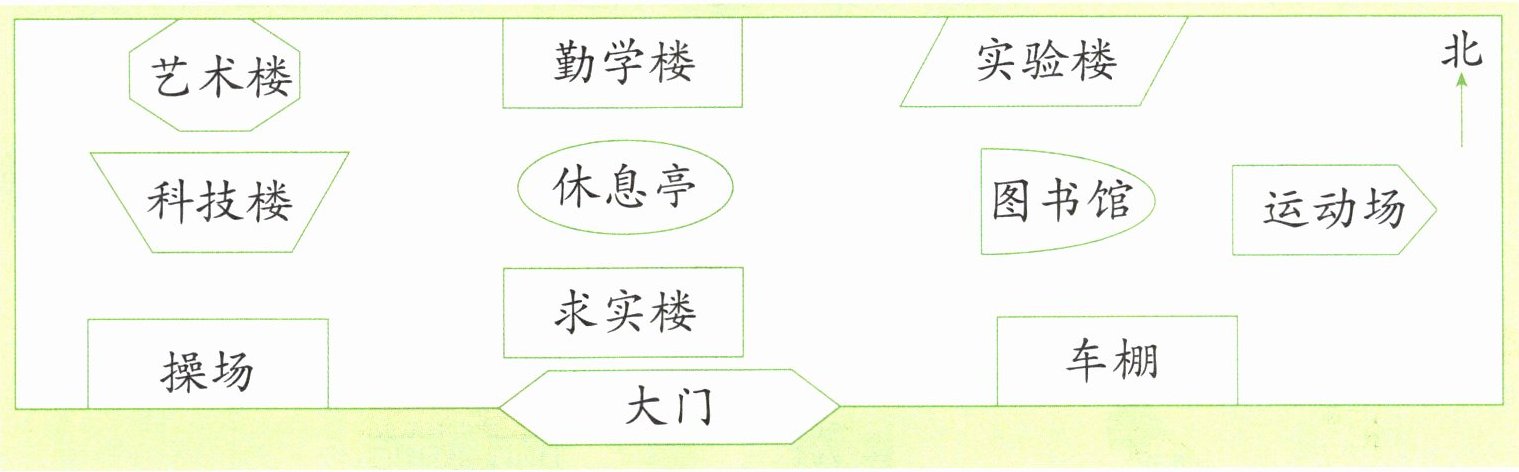 (2)实验楼在图书馆的( )面,在勤学楼的( )面。