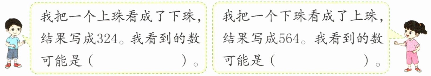 我把一个上珠看成了下珠,结果写成324。我看到的数可能是( )。
