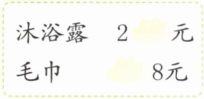 4. 提升 妈妈去超市买了沐浴露和毛巾,回家时发现购物小票被污染,她记得当时付给售货员50元,找回4元。你能算出沐浴露和毛巾的价钱吗?