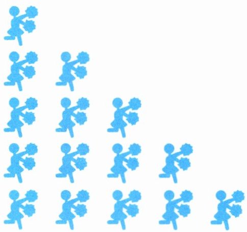 4. 二(1)班学生参加啦啦操比赛,队形如下图所示。图中一共有多少名学生?