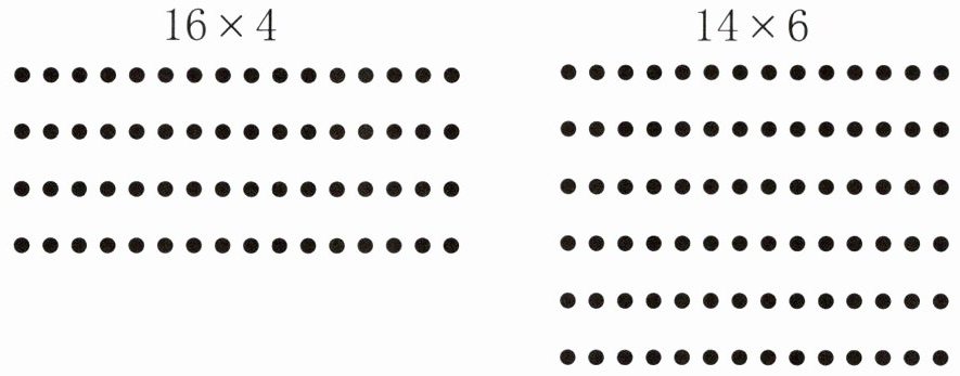 1. 在比较$16×4和14×6$的结果哪个大哪个小时,同学们进行了一些探究。