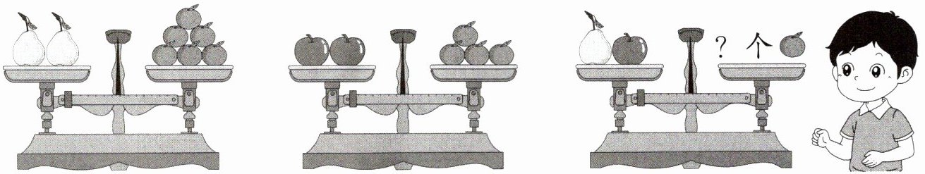 (1)如下图,天平的右边放( )个橘子,天平就可以平衡。