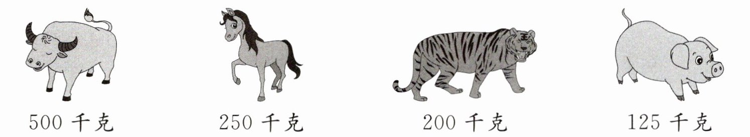 2. 下面动物的数量是多少时刚好够1吨?填一填。(假设每种动物体重相同)