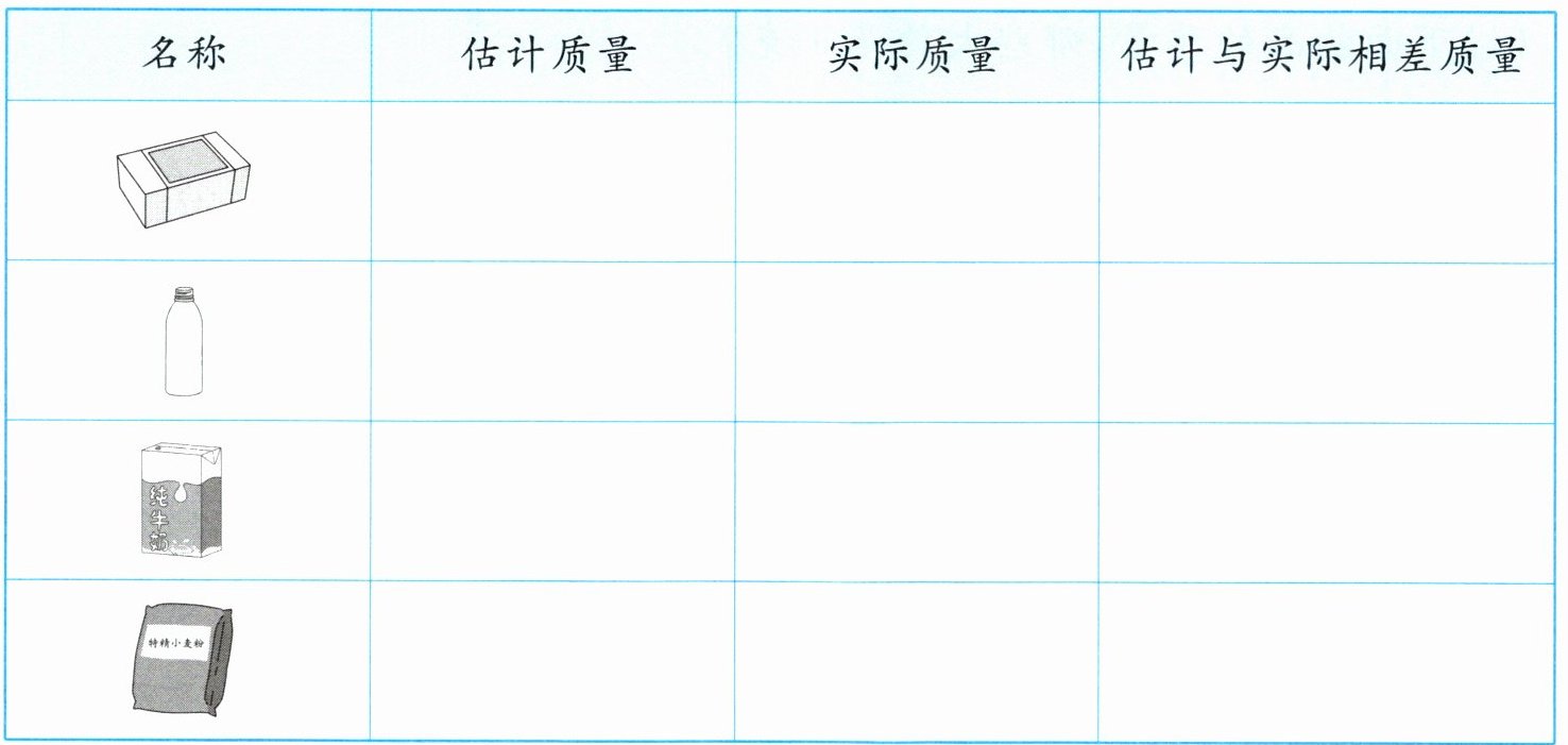 解析:本题主要考查对常见物体质量的估计能力以及简单的减法运算。通过先根据生活经验对物体质量进行估计,再用实际称重得到的质量减去估计质量,从而得出估计与实际相差的质量。