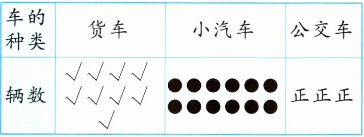 | 辆数 | √√√√√√√√√ | ●●●●●●●●●●● | 正正正 |