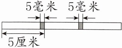 5. 拓展 把3张5厘米长的纸条粘到一起(如图),重合的部分长5毫米,粘到一起后的纸条长多少厘米?
