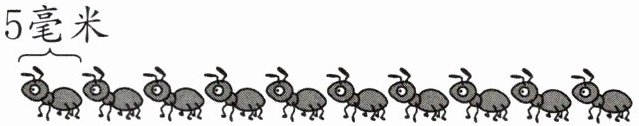 (2)全全在观察小蚂蚁活动,下面这些蚂蚁首尾相接总长是( )厘米。5毫米