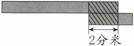 7. 有两根木条,一根长8分米,另一根长3分米,把它们像下面这样拼接在一起后,拼接后的两根木条的总长度是多少厘米?