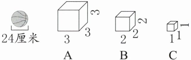 3. 俊俊过生日,妈妈给他准备了一份神秘礼物(如图)。这个篮球用( )号包装盒包装最合适。(教材P57第4题变式)(单位:分米)