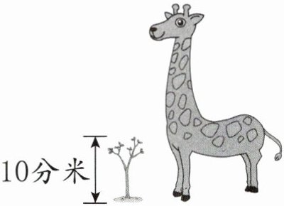 4. 如图,小树苗高10分米,长颈鹿大约高( )。