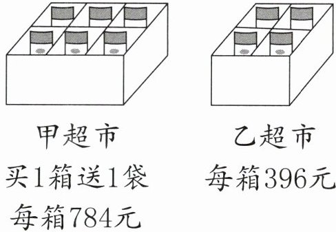 甲超市:6+1=7(袋) 784÷7=112(元)