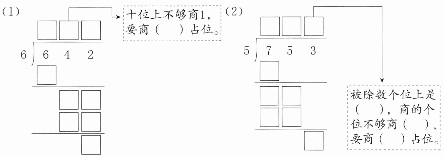 被除数个位上是( ),商的个位不够商( ),要商( )占位。