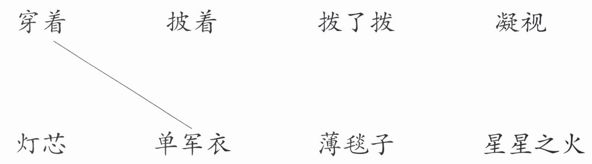 •着这星星之火,毛主席在沉思,连毯子滑落下来也没有察觉到。(1)读一读,连一连,说一说。