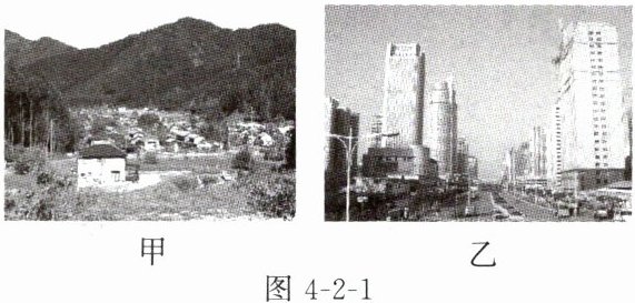 (1)乡村:以从事______生产的人口为主的聚落。一般来说,乡村聚落规模______,建筑密度较低,大多数是平房或低层建筑,周围有大片的______、果园、鱼塘等,生活服务设施较少。