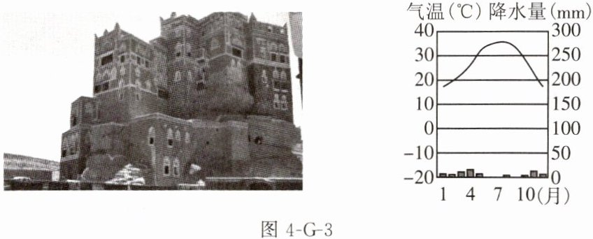 (4)萨那古城中民居建筑的特点与自然环境特征的对应,正确的是______。