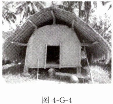 (2)以竹木、茅草作为原材料,就地取材;海南为热带季风气候,屋顶坡度大,方便雨水倾泻;用木板隔墙或者用稻草混合泥土制成墙体,盖檐宽而低矮,避免雨水浸湿墙面;等等。