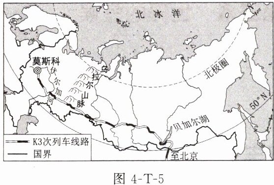 10. 【区域认知】(烟台期末)K3次列车是沟通中国和俄罗斯的国际旅客列车。关于K3次列车的描述,正确的是 ( )