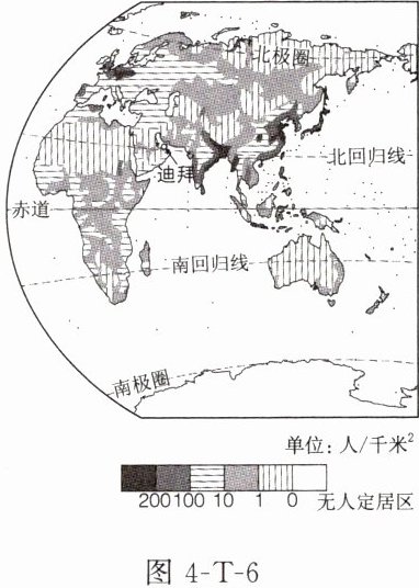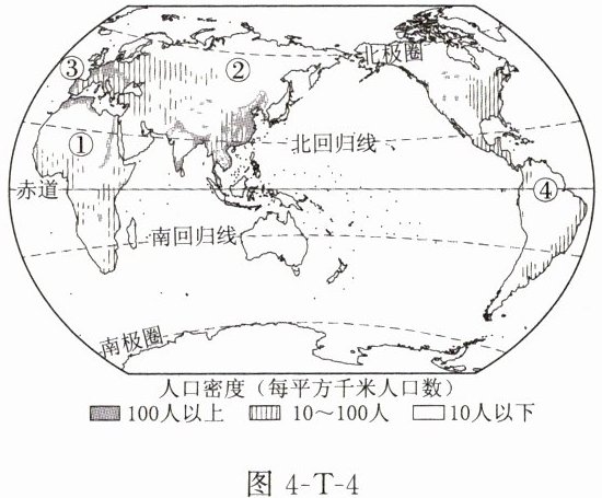 (2)从海陆位置看,北回归线穿过的大陆东部地区人口密度较______,西部地区人口密度较______。(均填“大”或“小”)