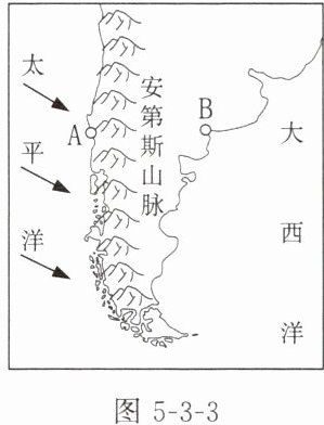 山地迎风坡A地降水______,山地背风坡B地降水______。