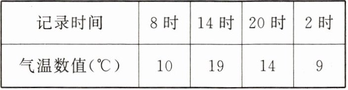 | 气温数值(℃) | 10 | 19 | 14 | 9 |