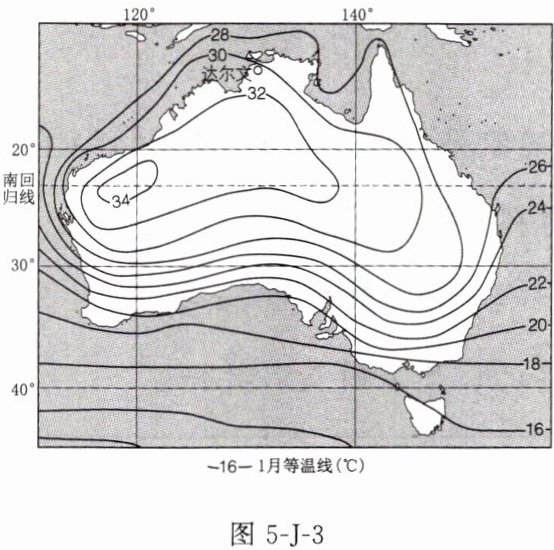 (3)读下图归纳澳大利亚大陆1月气温分布特点。