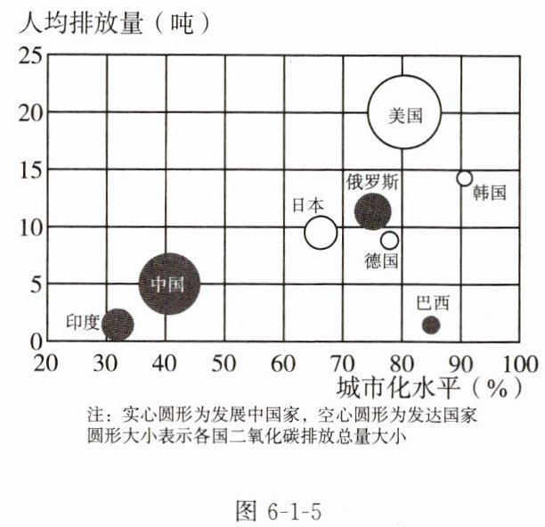 “碳达峰”“碳中和”已成为全球共识和全球战略。下图示意世界部分国家二氧化碳排放总量、人均排放量及城市化水平。读图,完成12~13题。