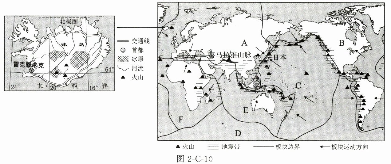 材料一 冰岛是位于欧洲西北部的岛国,全国活火山多达30座,冰川面积约1.3万平方千米,被人们称为“冰与火之国”。下图为六大板块局部分布示意图和冰岛地理位置示意图。
