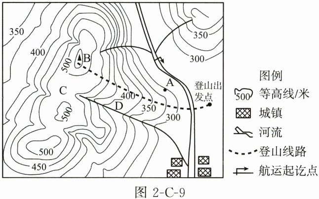 (2)山峰B的海拔应该在______米与550米之间。(2分)