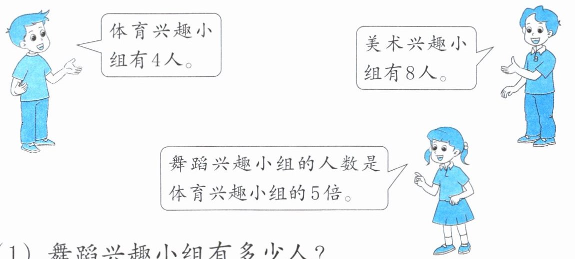 (2) 美术兴趣小组的人数是体育兴趣小组的多少倍?