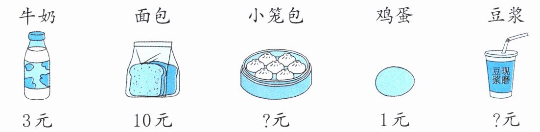 ②一袋面包的价钱是一杯豆浆的5倍,一杯豆浆要多少元?