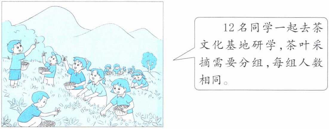 (3)又来了6名同学,则总人数为$12 + 6 = 18$(人),每组6人,$18÷6 = 3$(组)。