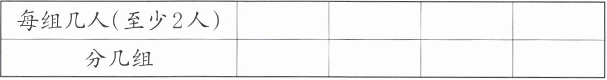(2) 如果每组最多5人,那么至少要分成多少组? 试着画一画,写一写。