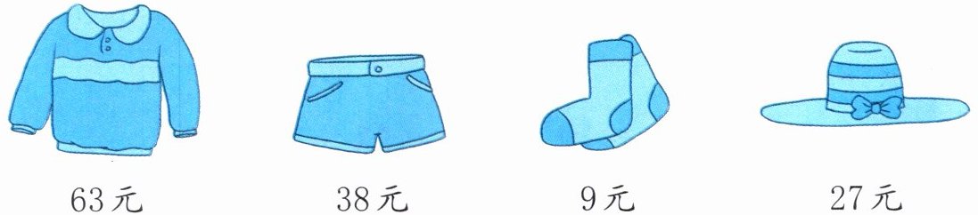 答案:$63 + 9 = 72$(元),所以一件上衣和一双袜子一共$72$元。