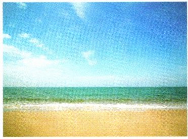 第三幅图云看起来较厚,是一大团一大团的,符合较厚的、大团的云的描述。