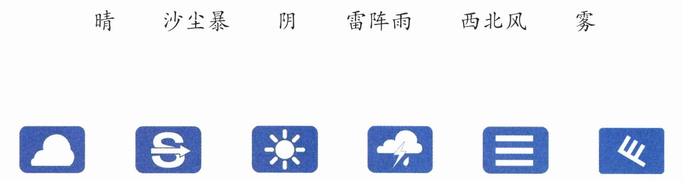 1. 将下列天气预报用语和对应的天气符号用线连一连。