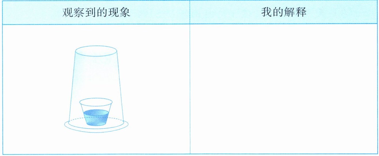 2. 观察实验:取一小杯温水,用干燥、透明的大杯子罩住它。