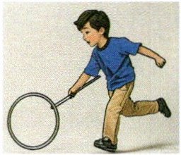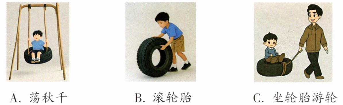 4. 学校开展趣味游园会。下列轮胎的运动路线,与滚铁环时铁环的运动路线相同的是(