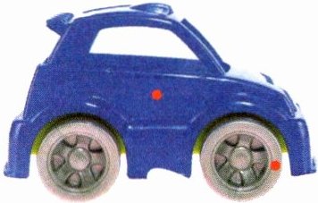 3. 在小车的两个不同位置贴上圆点(如右图),当小车向前运动时,这两个圆点的运动路线(