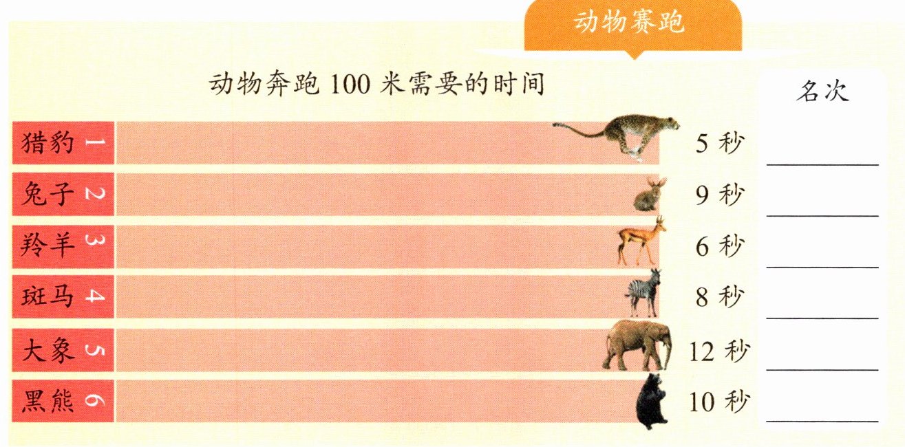 1. 将下列动物按照运动的快慢排列名次。