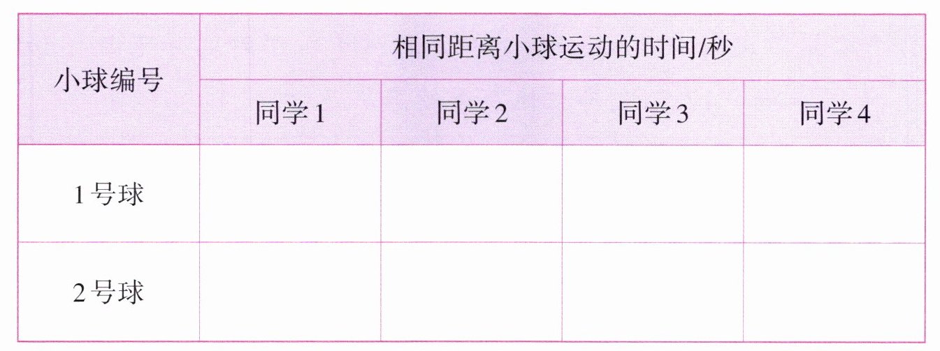 2.记录不同的小球运动相同距离所花的时间,选择其中一组数据进行比较。