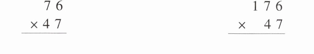 $\begin{array}{r r r}&&&1&7&6 \\ ×&&&&4&7 \\ \hline &&1&2&3&2 \\ +&&7&0&4 \\ \hline &&8&2&7&2 \end{array}$