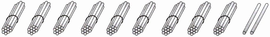 (1) 图略(按照每$30$根小棒为一组进行圈画,可圈$3$组,还剩$2$根)。