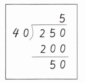 错误:商5偏小,因为40×5=200,250-200=50,余数50大于除数40,商应调为6