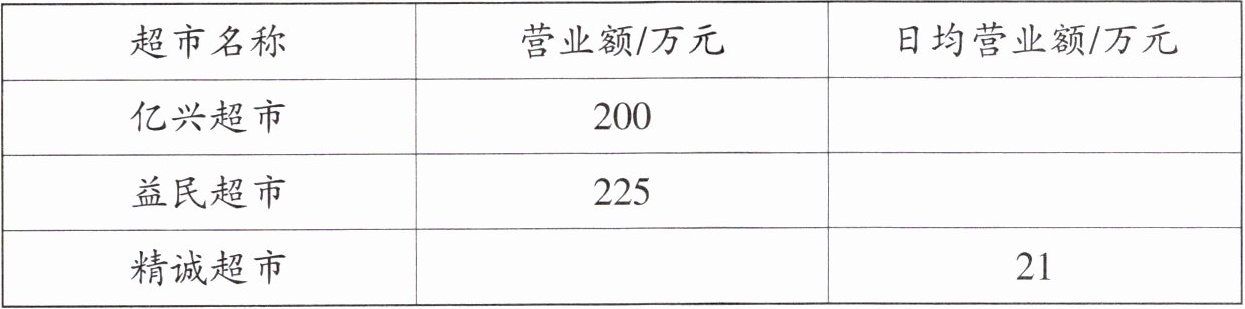 2. 小欣调查了亿兴超市、益民超市、精诚超市8月份前25天的营业额,得到如下表所示的数据。请把表格填写完整。