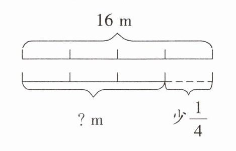 对于第一个图,已知总长度为$16m$,下面线段比上面线段少$\frac{1}{4}$,求下面线段的长度。先求出下面线段占上面线段的分率,再用总长度乘以该分率得到下面线段的长度。